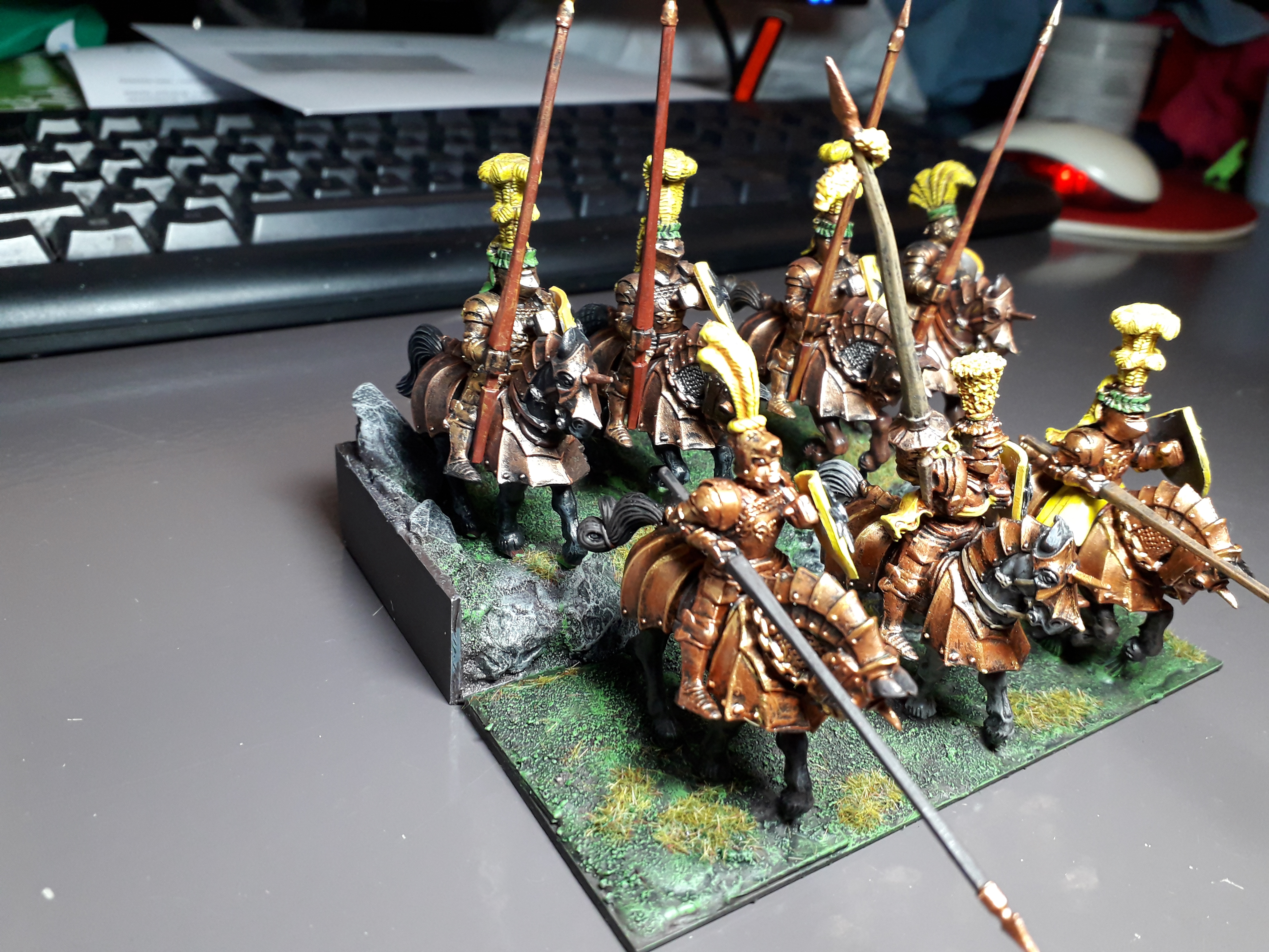 As Monster March is finally finished – see the dragon here- , I restarted multibasing knights. I had some fun playing with them as long as they were single-based, but I want them ready for Kings of War!