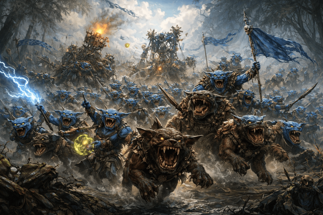 Below is the fluff for my goblin army. The army page can be found here: The Mawpaw Marauders – The Blue Ones of the Swamp In the reeking wetlands at the edge of the Green Swamps of Pannithor, there dwells a goblin host that defies common sense, natural philosophy, and several well-established bestiaries. They are … Continue reading Goblin fluff: Mawpaw Marauders