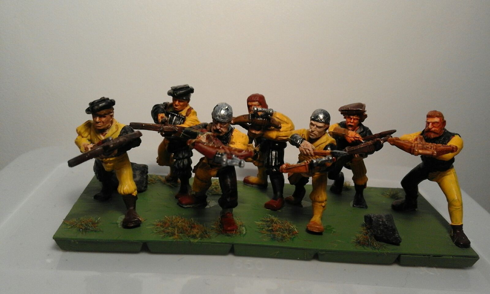 Kingdoms of men has three kinds of shooters: Archers, Crossbowmen and arquebusiers. These are nearly the same in the fact that archers are the default unit, crossbowmen get reload! and a point cost rise for piercing (1) and arquebussiers get another point cost rise for piercing (2)