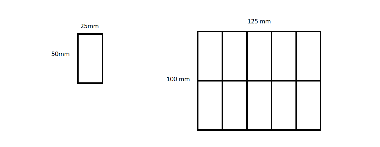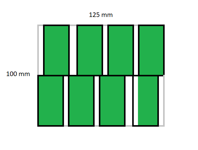 This represents a single cavalry base (25*50 mm) and a regiment consisting of 5 cavalry bases wide and 2 deep. The actual models are shown green.
