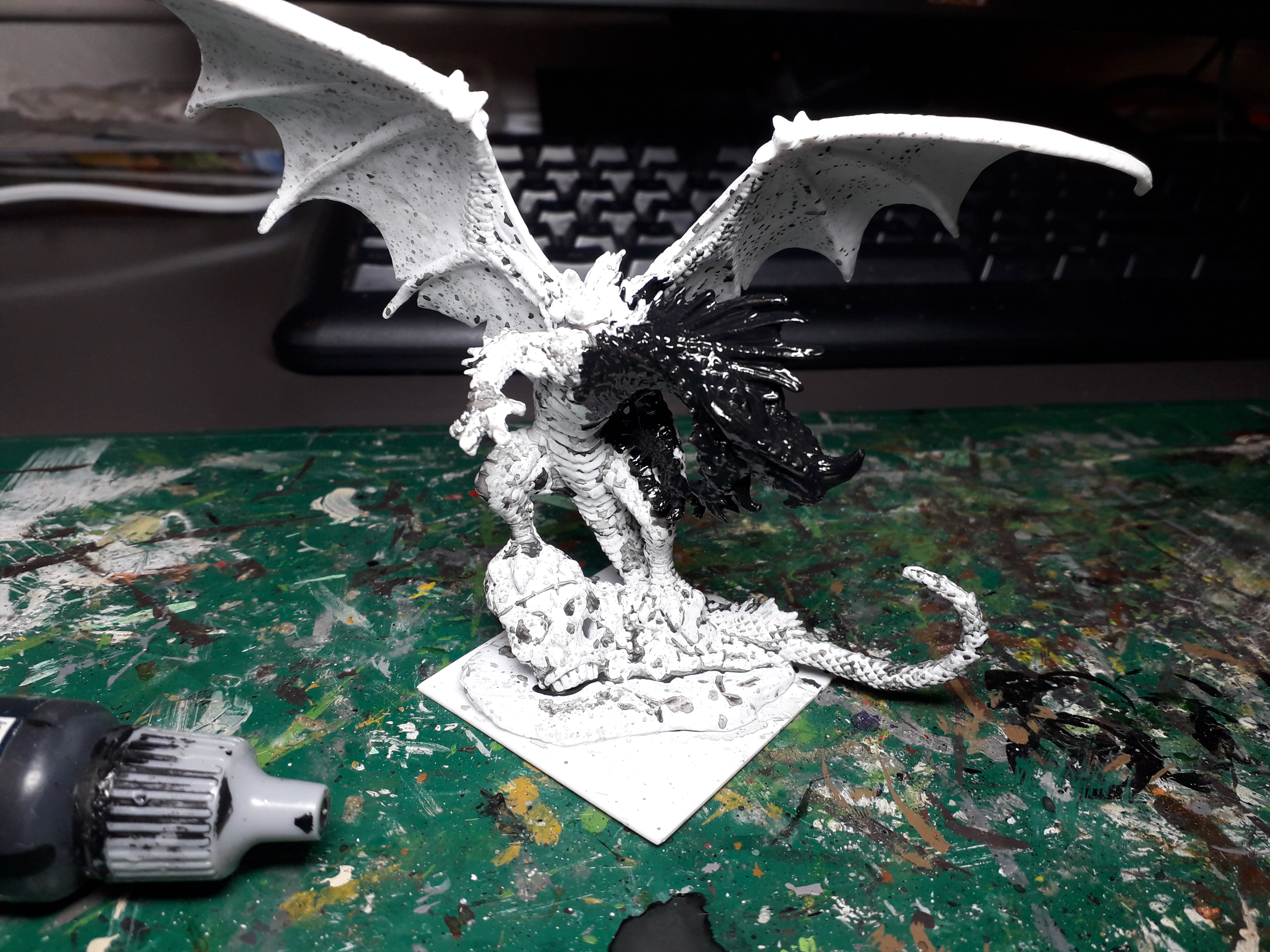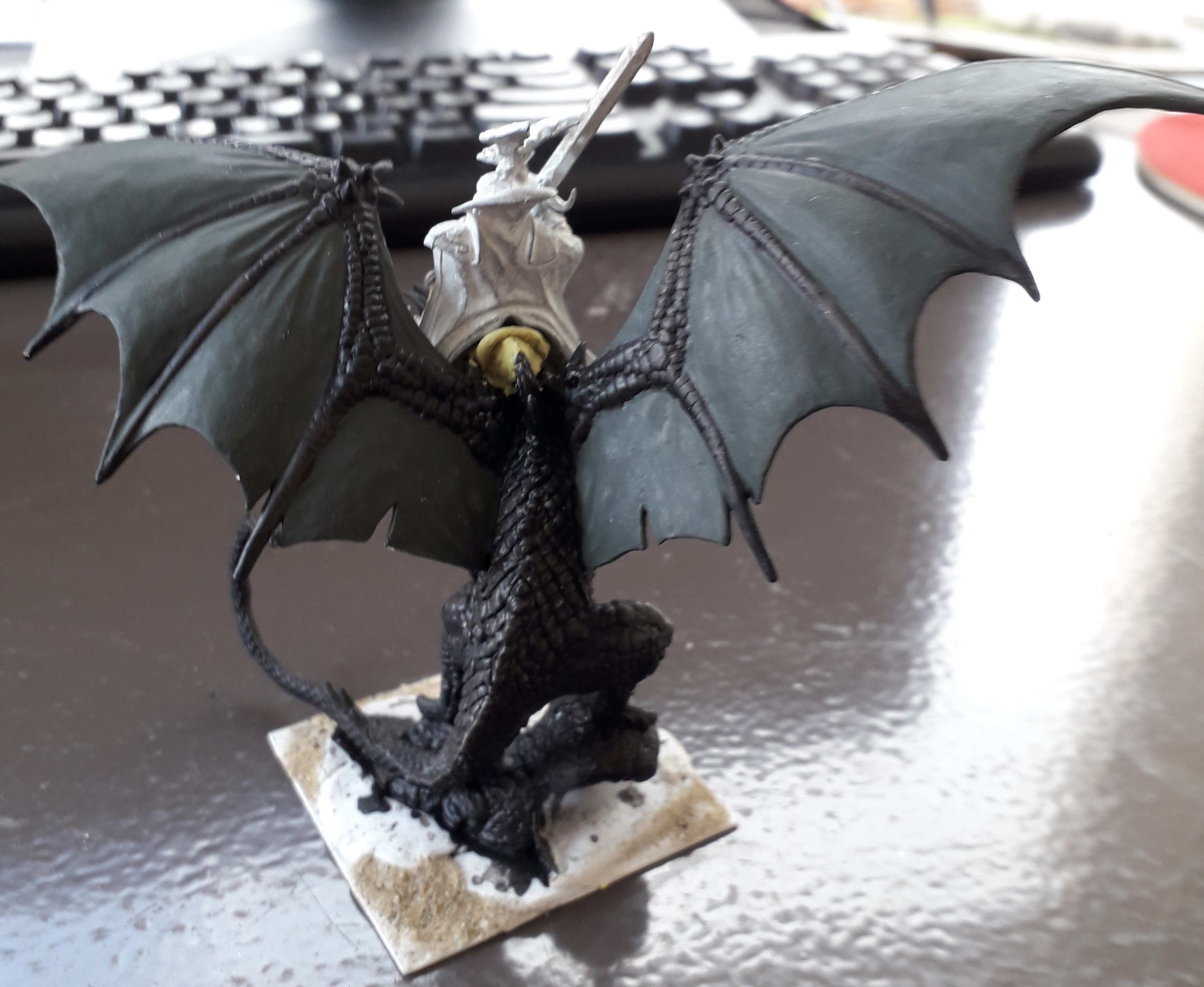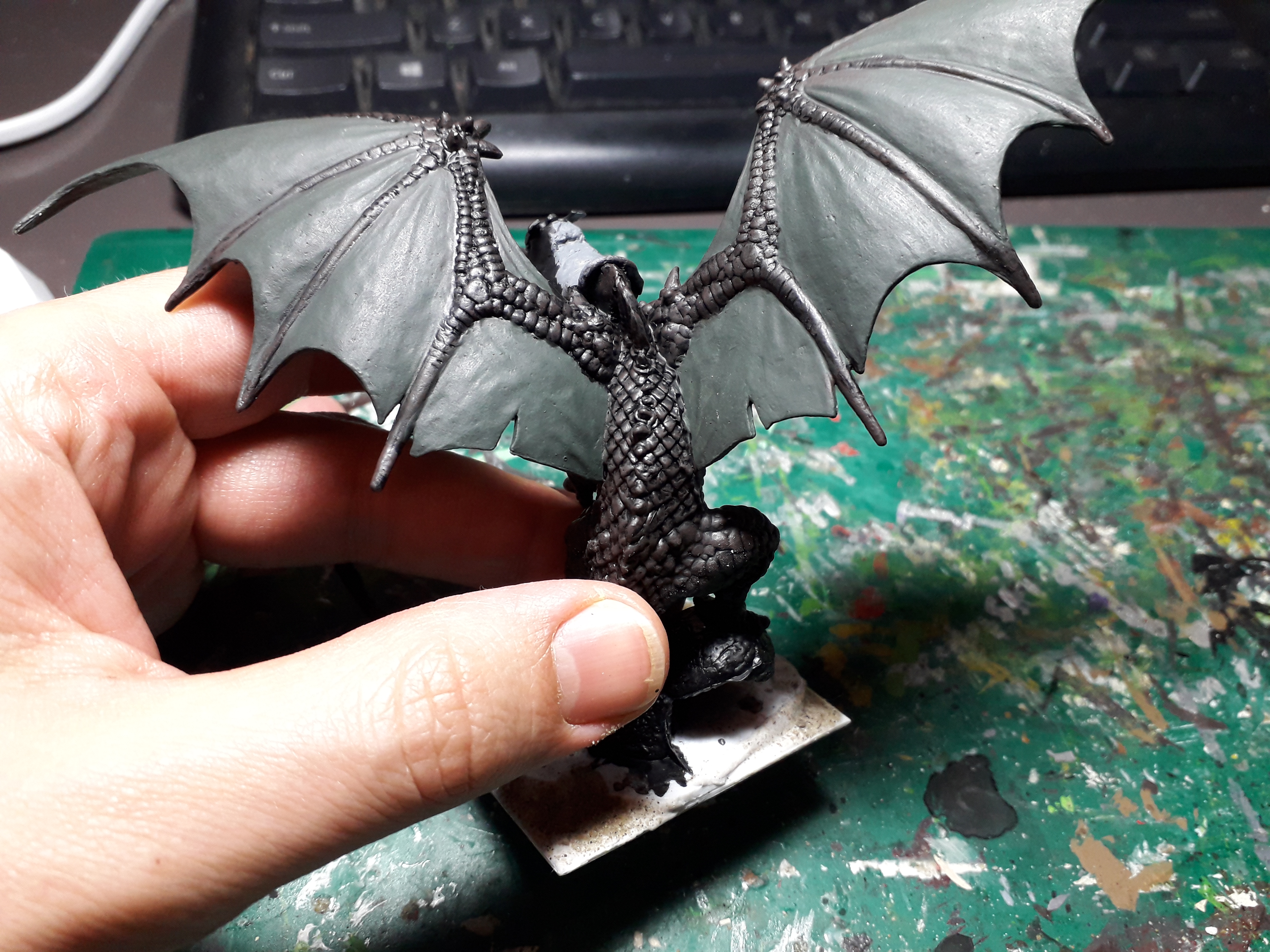 The dragon is going to be dark (black highlighted to medium brown) while the wings are gonna be dark green highlighted to a more vibrant green. (the colours of my undead army are green + neutral colours)
