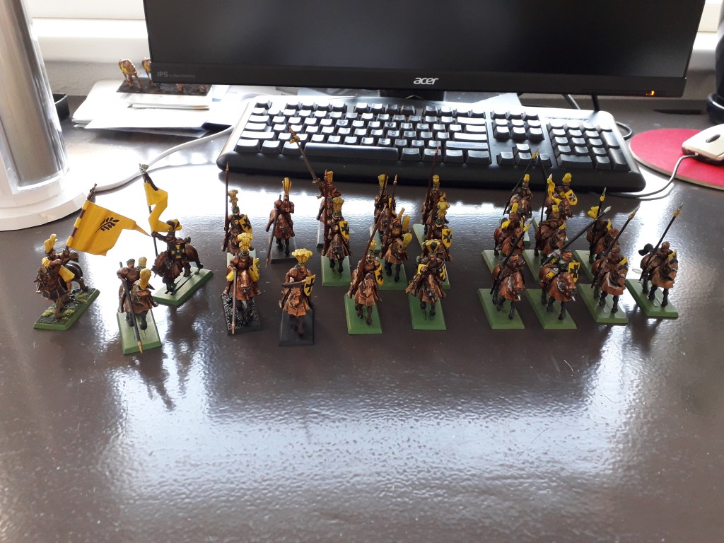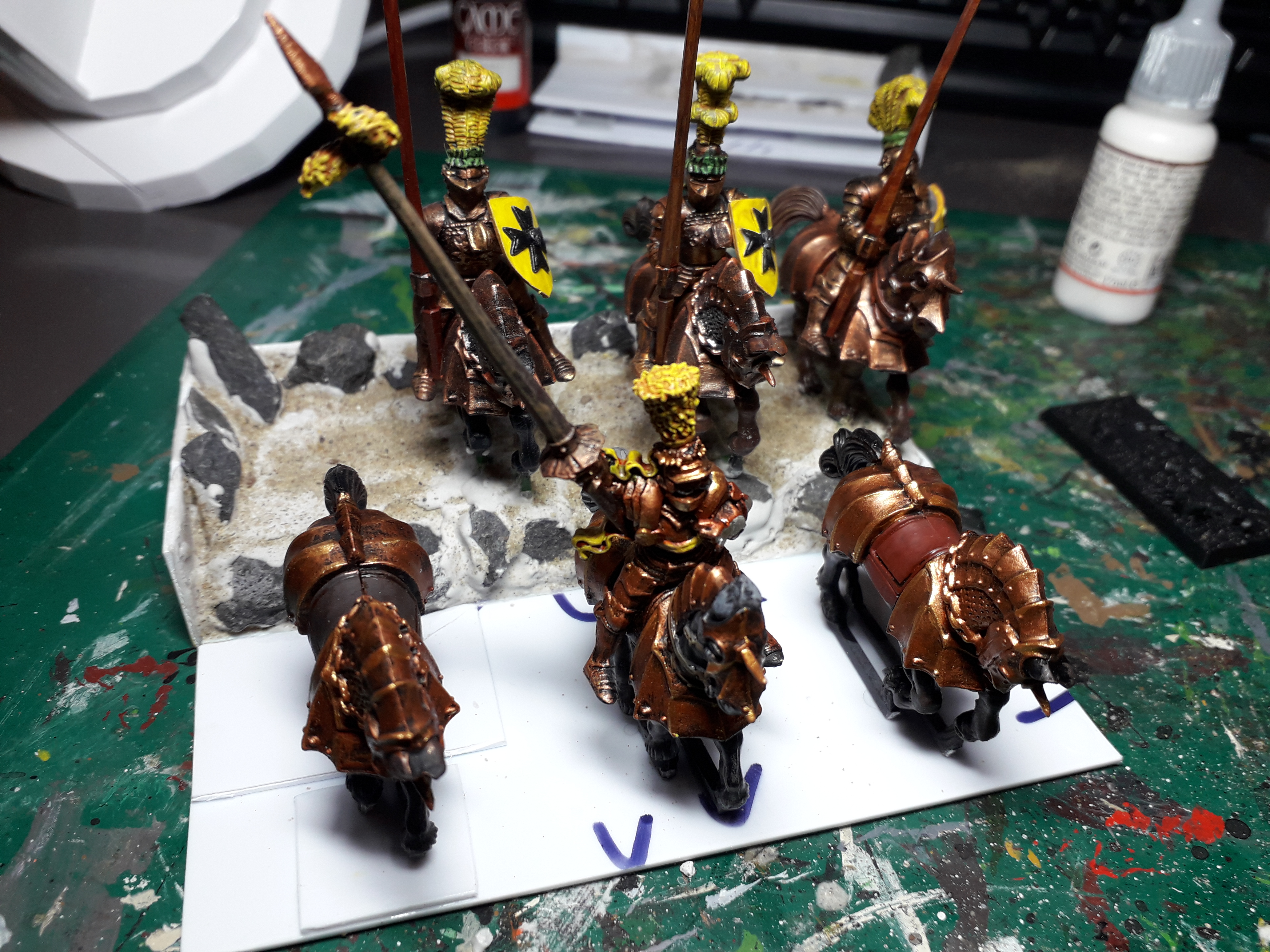 The general idea for 2 of the 3 regiments is to create the image of a unit of knights charging down a downward hill. (a bit inspired by the ratkin horde I made some time ago). As easy as this proved for infantry, for cavalry it’s a lot harder.