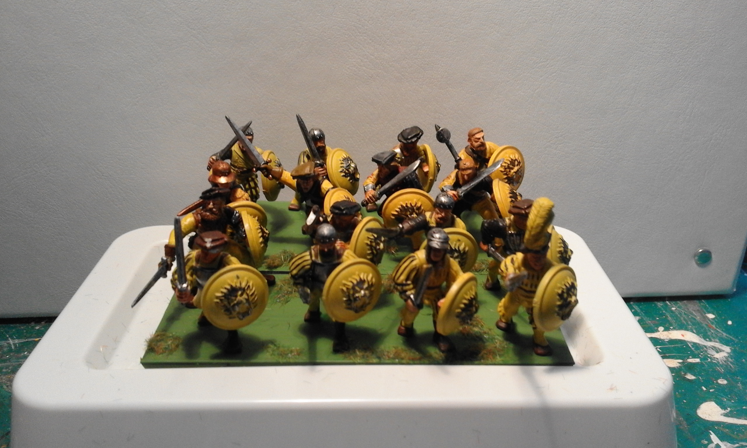in 2017 the idea surfaced that multibasing can also include some measure of terrain. (even thoug it’s only a bit of static grass) These are my shield wall that see combat regulary even now.
