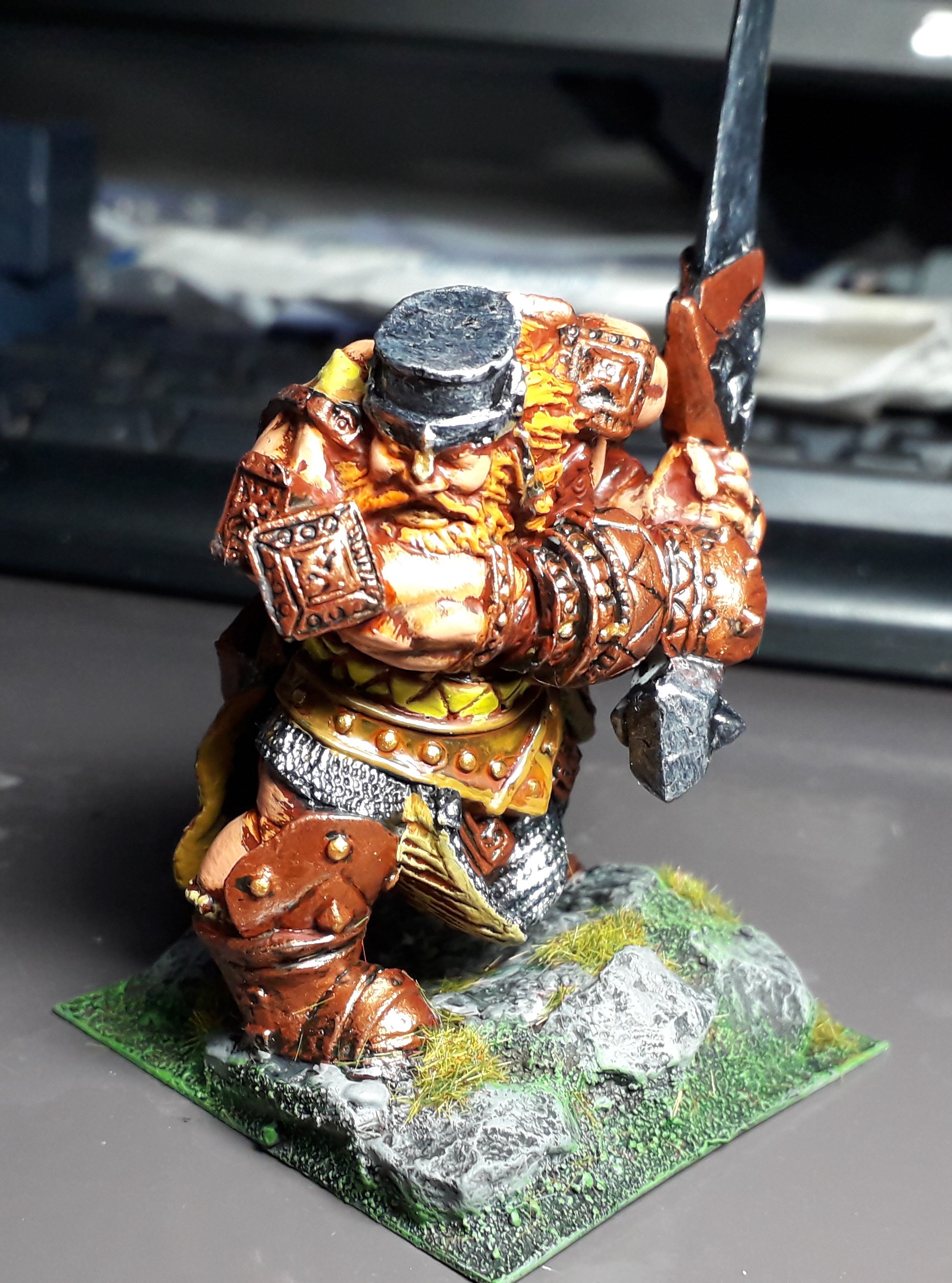 This week I finished a Giant. He’s both useful for Kings of War (ever since the Kingdoms of Men list includes giants) and for DnD (where we are playing Stormking’s thunder right now) so he fills two roles.