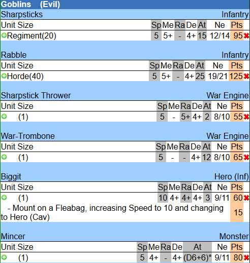 So I started putting 15-ish of these guys together. I even got plans to build a goblin balista too. This would increase my goblin detachment to 495 points: