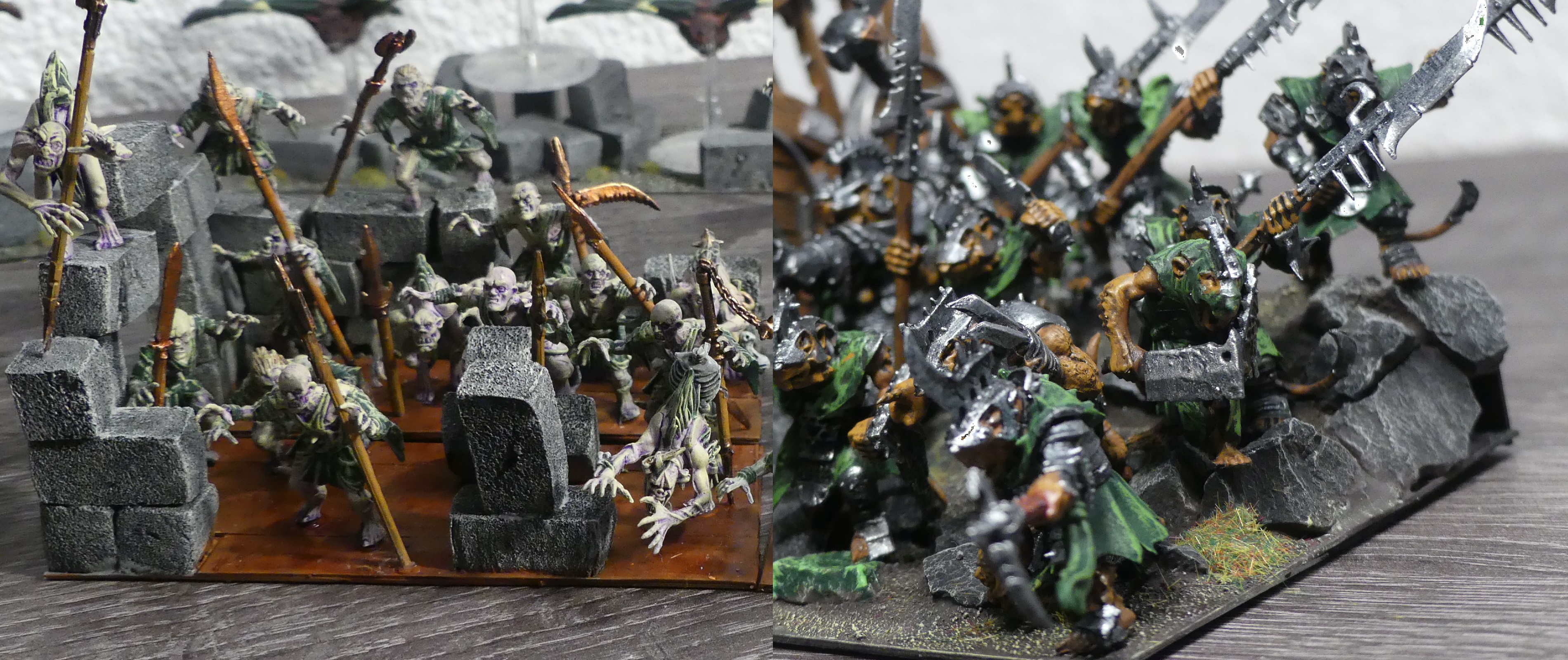 This means that list building can be remarkably simiar. Want to make a melee focussed army? The differences between Varangur or Orcs are limited. Want to make a horde army? Though they look different, the play style between Kingdoms of Men, Goblins and Ratkin is remarkably simmilar. (some are more effective than others, but that’s it.)