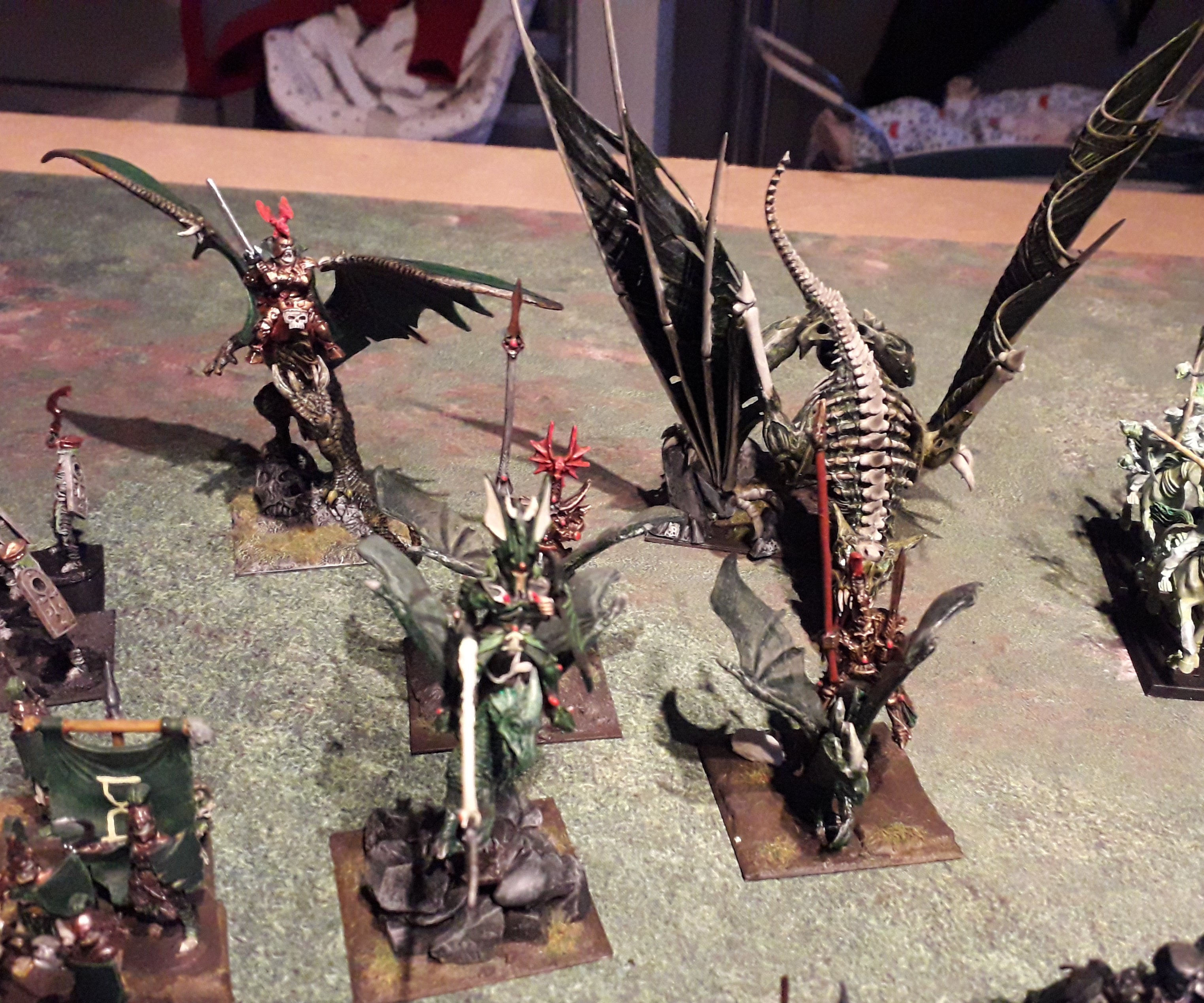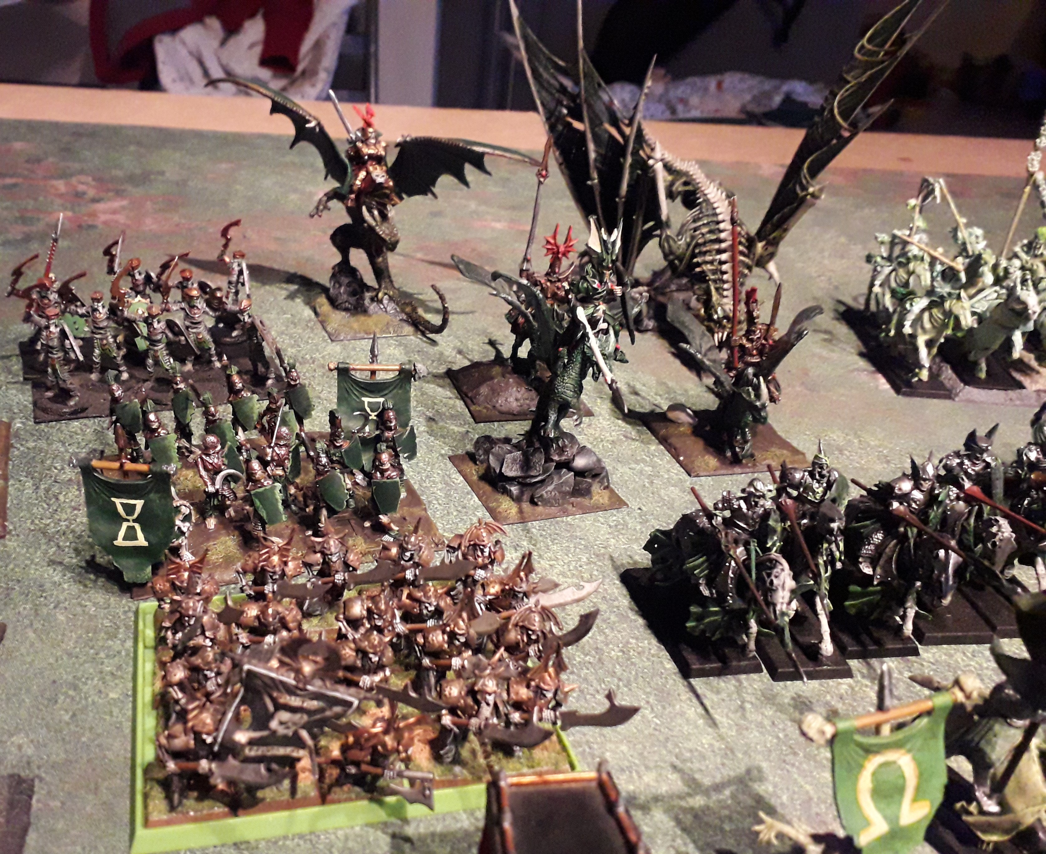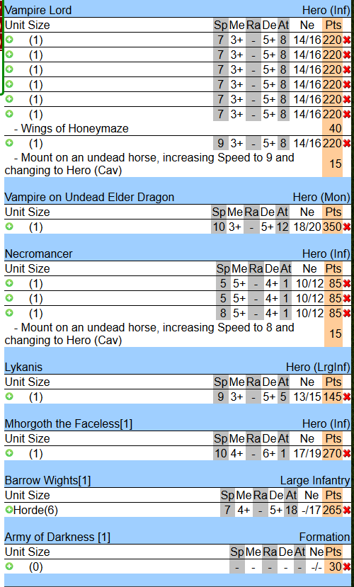 empire of dust: 1,530; undead 7,540. (Edit: I forgot a vampire lord on undead dragon.There’s 2, one on a 50*50 base and one on a 75*75) Together 9,070 without any upgrades or magical items not mentioned above. This means that the army can total easily 10,000 points.