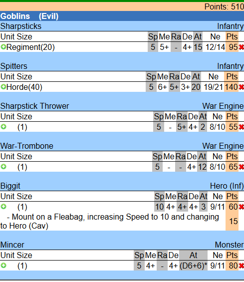 Under 2nd edition rules, the army is now 510 points. (no items), but under clash ’19 rules, the army is still invalid. (the 2nd sharpstick thrower also cannot be unlocked, even under 2nd ed. vanila rules)