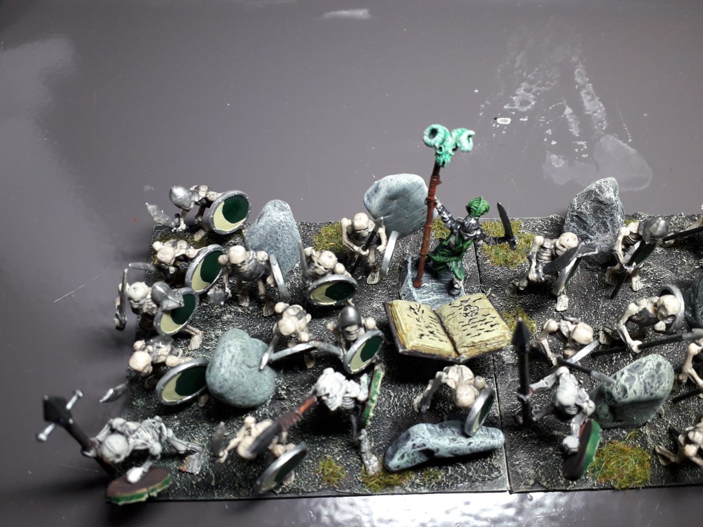 There’s 2 kinds of skeletons: The normal sword-and-board ones and those with spears. The spear-skeletons have slightly higher attacks and the phalanx special rule.