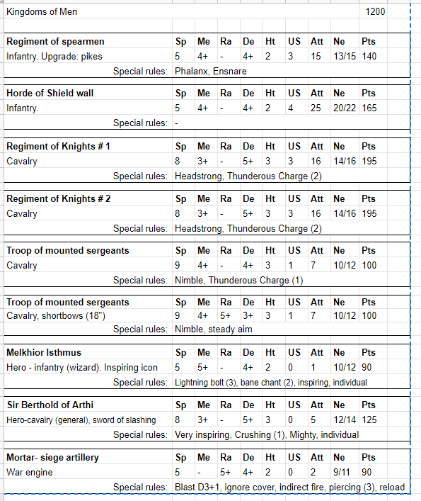 “About half of the knights have been killed or missing in action. The infantry did better.” was the sergeant’s reply. “How many injured? ” asked the major. “most of the rest of the knights. Of the infantry, about half are ready for duty” was the reply.