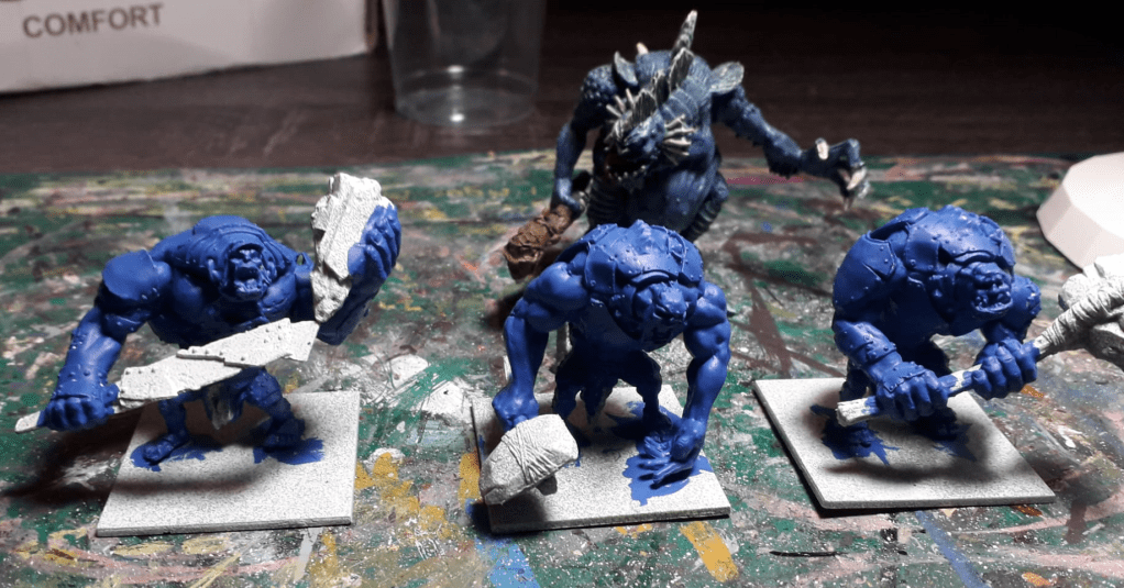 First of all, my goblin army is still in need of trolls. It’s been a while since I painted anything goblin related, but the new Mantic goblins look marvelous so I might pick up a box at the upcoming tournament! And since I don’t have my hands on these yet, better get those trolls finished!