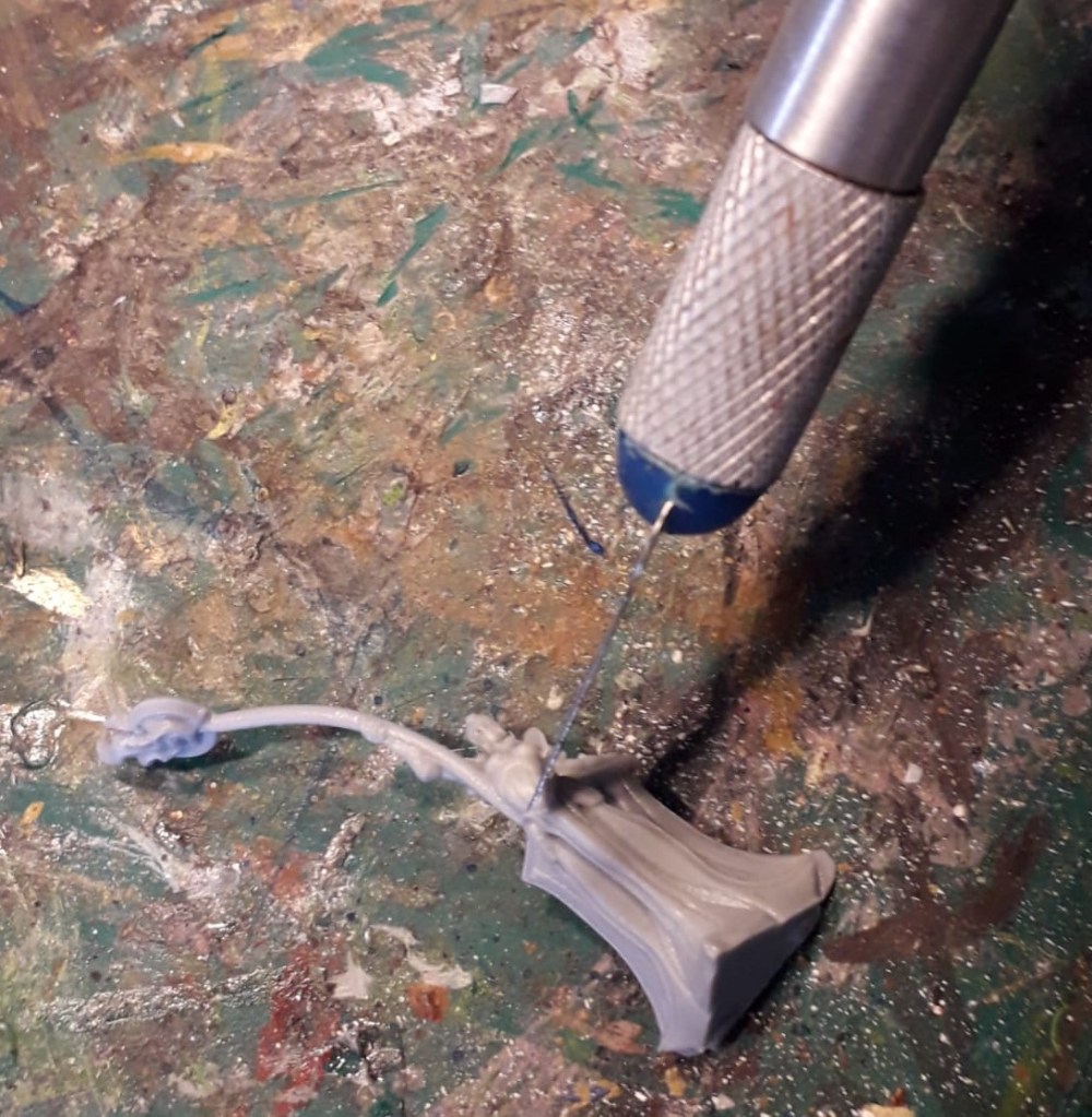 After I lost all the angel parts, I started building a bow sprit. A bit of green stuff and a wooden skewer did the trick! Also attached here is the figurehead, cut from the GW knight head.