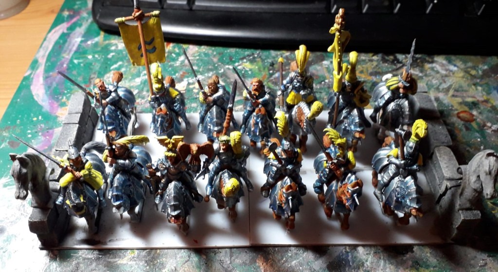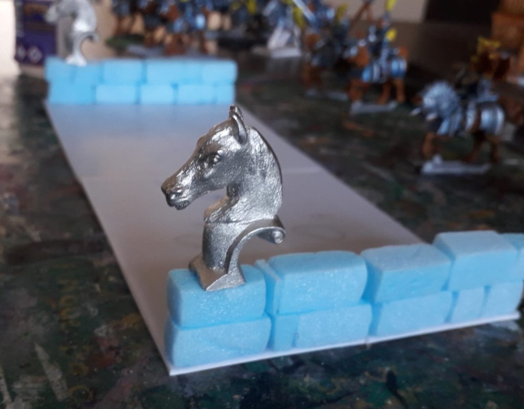 Last week I finished painting all those knights, so this week I started building the actual multibase. The general idea is to build a bridge over a river which the knights are crossing. In that way, I can also justify using them as redemption knights in Order of the Green lady, hence the water theme!