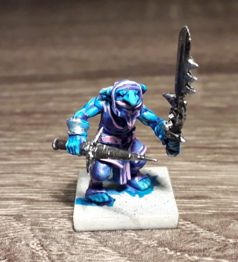 Another small project I finished is “the pink goblin”. During the winter holidays, I spent an afternoon painting with my two girls. Their projects turned out to be -predictably- pink, soI had to show them how to make pink paint look good. As I had goblins built, this guy was sacrificed for this project. 😉