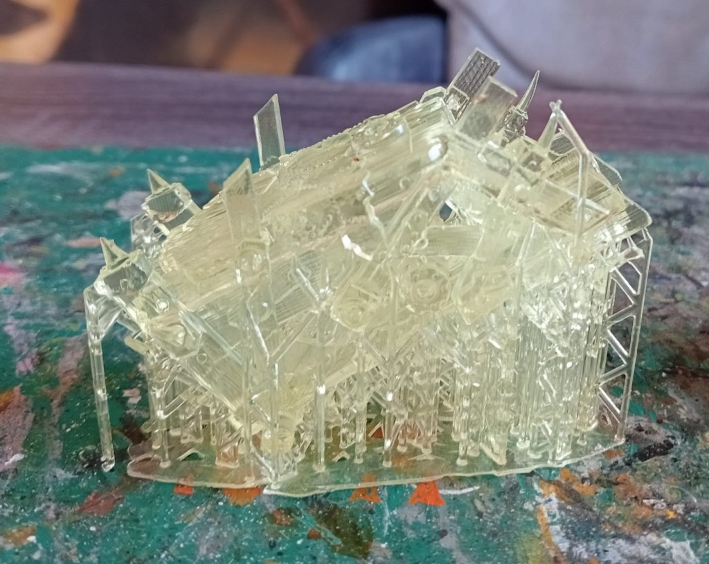 This is how they arive. (the largest part, there are several). Due to size issues, I had to size down the model to about 70%. This new model does fit perfectly on the base, but it has a number of new issues.