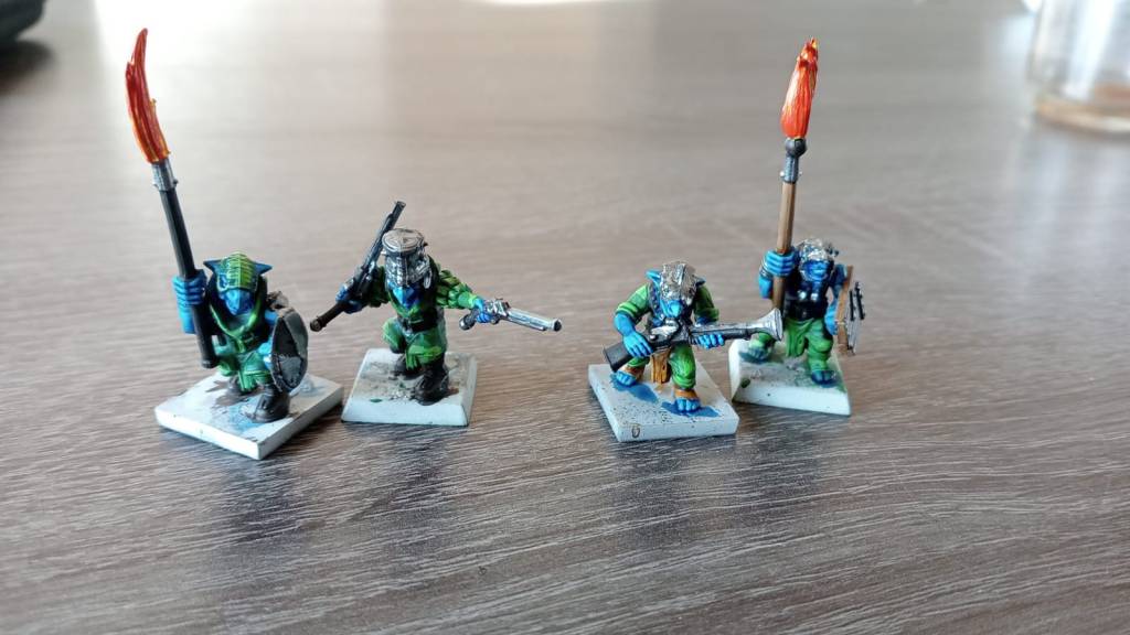 That’s one of the strange things of tabletop wargaming. Up close, darker colours and blended shadows are really beautiful, but on the tabletop, these really don’t show. For this reason, I like my first maypup launcher (left) better, while on the tabletop, the 2nd (right) is much brighter and stands out a lot.