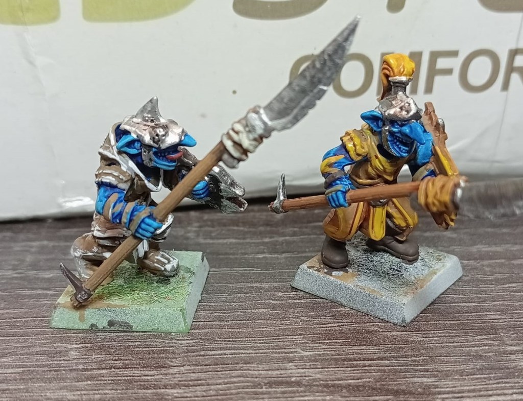 The first thing to be finished was my Blue-gre army. My army lacked two regiments of warriors, which I finished. I built them so they combine as a horde and magnetized the two regiments.