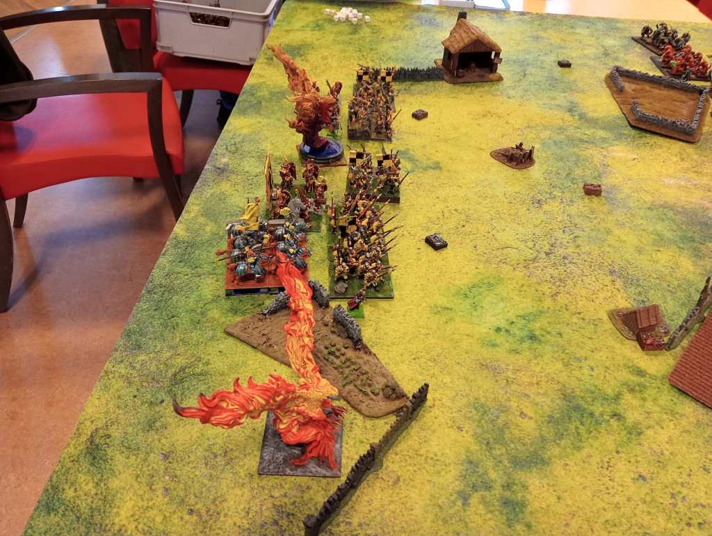 The idea worked pretty well against a newer player. Against a more experienced player, I would have had little defense against mobility. A pair of (for instance) generals on winged beasts on my flank would have wreaked havoc as I’d only have the phoenixes to block them.