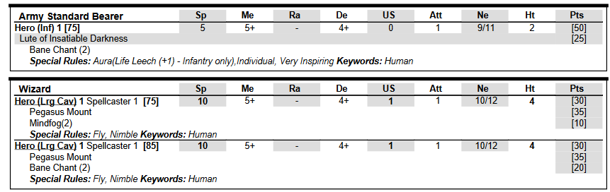 - 3 hordes of 22-point nerve with phalanx ánd ensnare are a hard counter to 50% of the games’ heavy hammers. (if you got either fly or ride something, you don’t want to fight these guys). With a bit of careful planning, they can hold their own against most infantry hordes too, even an impressive unit of reborn legionaries will hit on 5+ when hindered AND fightning Ensnare. If you get into a grind with them, those 3×30 attacks supported by bane chant will do some damage. The two wizards can position themselves to block their flanks.