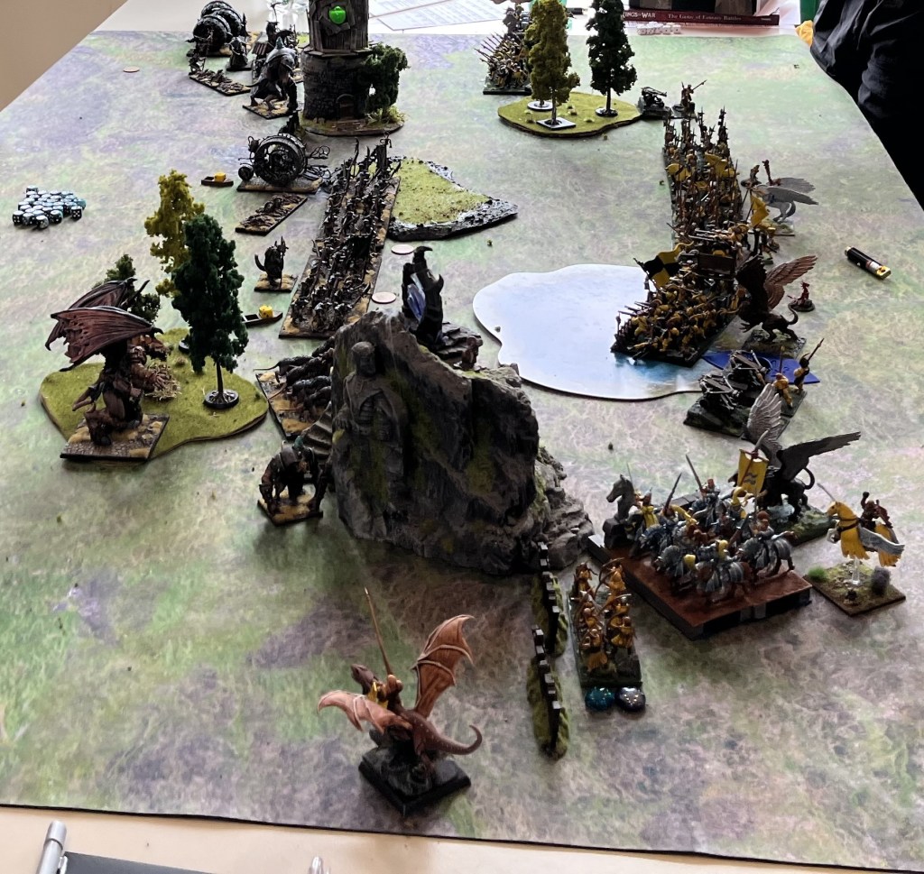 I’m not entirely sure. The charge with the rat demon was a calculated risk and if he would have destroyed the handgunners, he still would be sandwhiched between two generals on winged beasts of which at least one would have had a flank. His army just wasn’t able to deal with the 3x 22 points of ensnare nerve supported by 3 flying heroes.