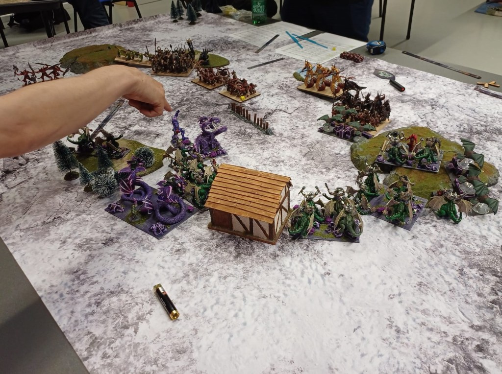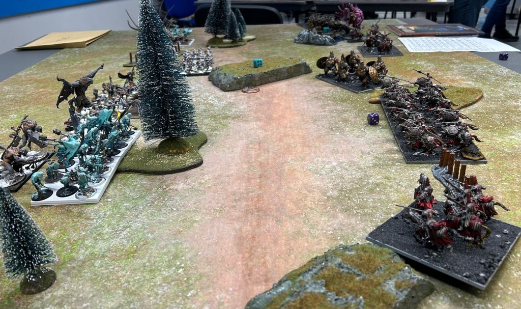 In day 2 we played both Ambush (below my 10-man ogre army vs Florian’s trident realms) and Armada.