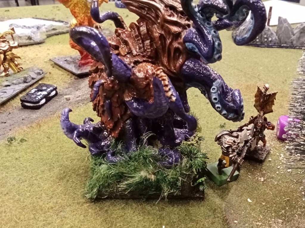 Finally, I managed to play a game against Martin’s Trident realms in “capture the king”. (see the battle pack) As you can see below, my monarch (A Basilean Dictator) got demolished between a frog captain and a massive kraken! Ouch!