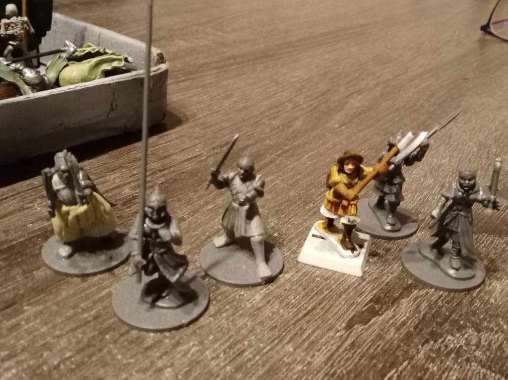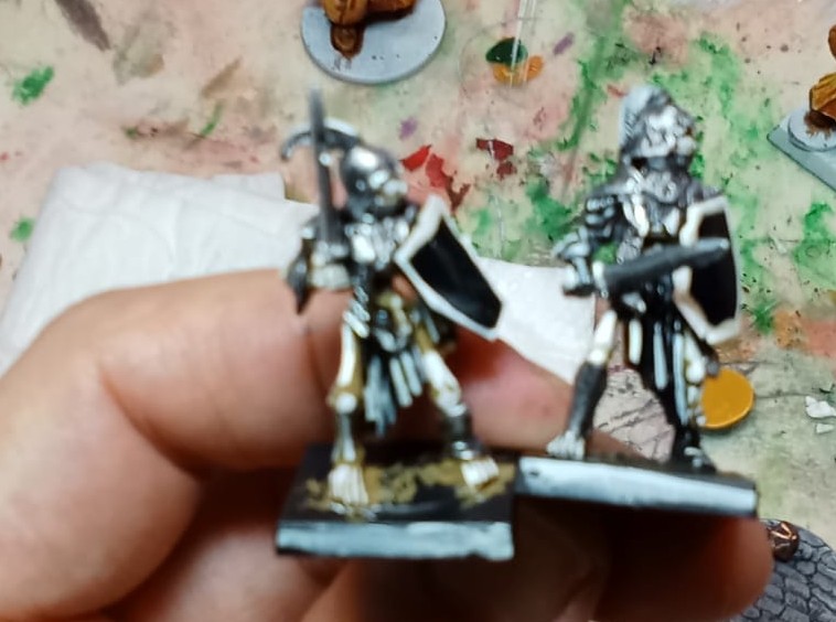 The models are oldhammer grave guard that I had laying around a long, long time. They’ve been part of a Warhammer army that I bought when GW discontinued their game and cheap armies flooded online selling platforms. Ever since, I used them only once or twice, as they were still single-based. The banner, however, was a beautiful piece of freehand.