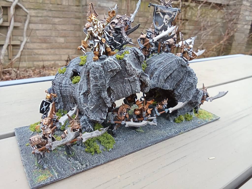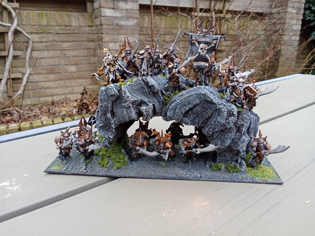 The horde base was built here (in the Netherlands) using basing materials from Austria. The stones I used to build the horde base are from the Grossglockner, Austria’s biggest mountain. I grabbed a handful gravel when I visited the mountain last summer, so it’s a bit smaller now. 😉 Stone from the Austrian alps contain a lot of minerals, so there’s a certain sparkle in this gravel that stones from elsewhere doesn’t have. This is why I didn’t paint them!