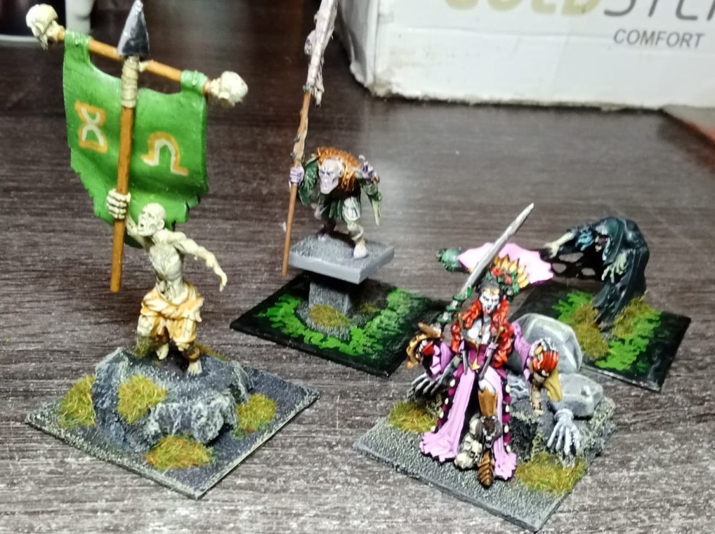 The first thing I did just before starting 4th is rebasing my undead heroes. Here’s the vampire, Army standard, crypt gorger and necromancer. The shambling hordes are ready again!