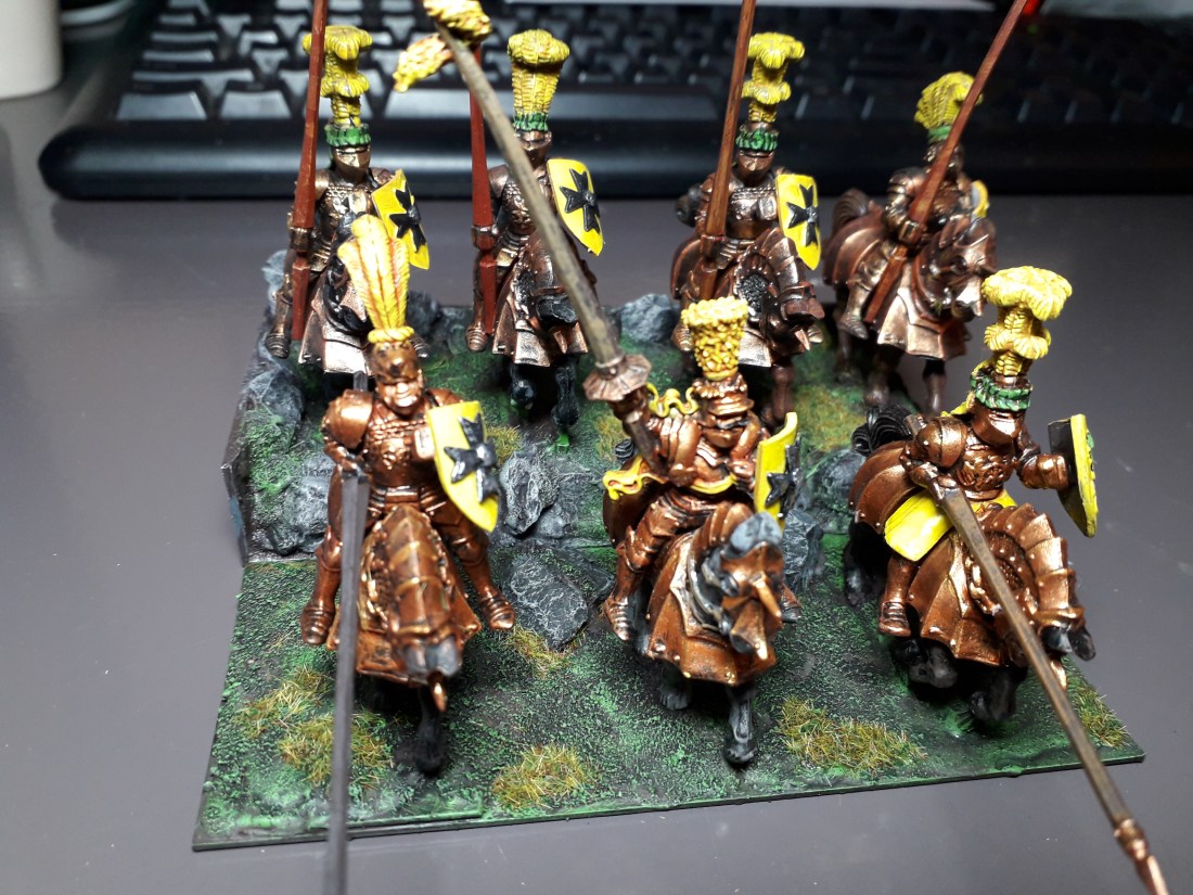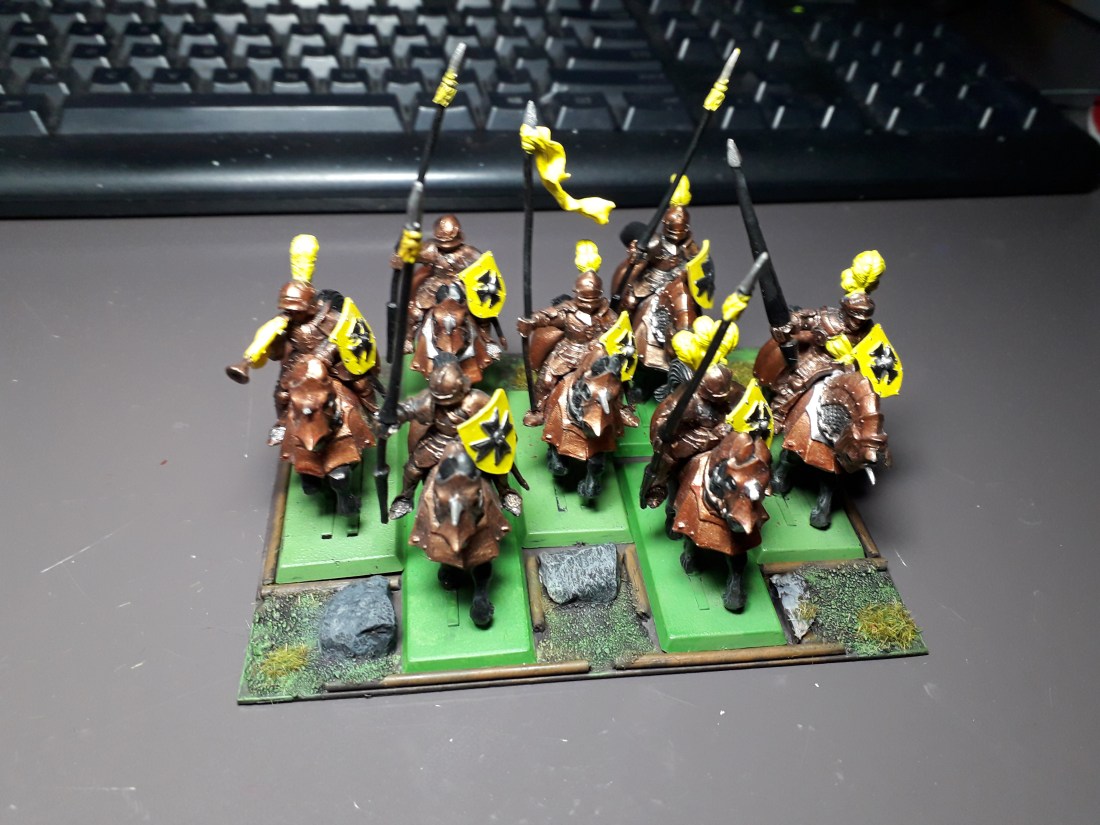Remember those reconnoiterers that got finished last week? Here's them (without their riders at the moment) while I'm basing them. That said, I also finished one of these slotted multibases where I can fit a number (in this case seven) individual models for my 3rd regiment of knights. Here's two pictures: I must say I'm … Continue reading Hobby Update – Recons and multibase slots